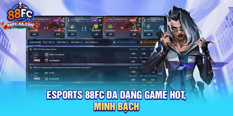Esports 88FC sẽ là nơi lý tưởng để tận hưởng không gian thi đấu hiện đại, thế trận rõ ràng, minh bạch. Với dữ liệu cập nhật chuẩn xác, bạn sẽ nhanh chóng định hình được bộ môn phù hợp với chiến thuật cá nhân. Đăng nhập đường dẫn 88FC88 ngay hôm nay để chinh phục các tựa game sôi động, cải thiện kỹ năng, tối đa hóa lợi nhuận.
